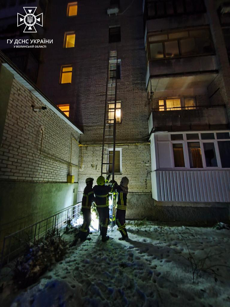По прибуттю на виклик рятувальники луцької 2-ї державної пожежно-рятувальної частини та аварійно-рятувального загону спеціального призначення за допомогою трьохколінної висувної драбини дістались у квартиру через вікно третього поверху та виявили на підлозі жінку літнього віку.