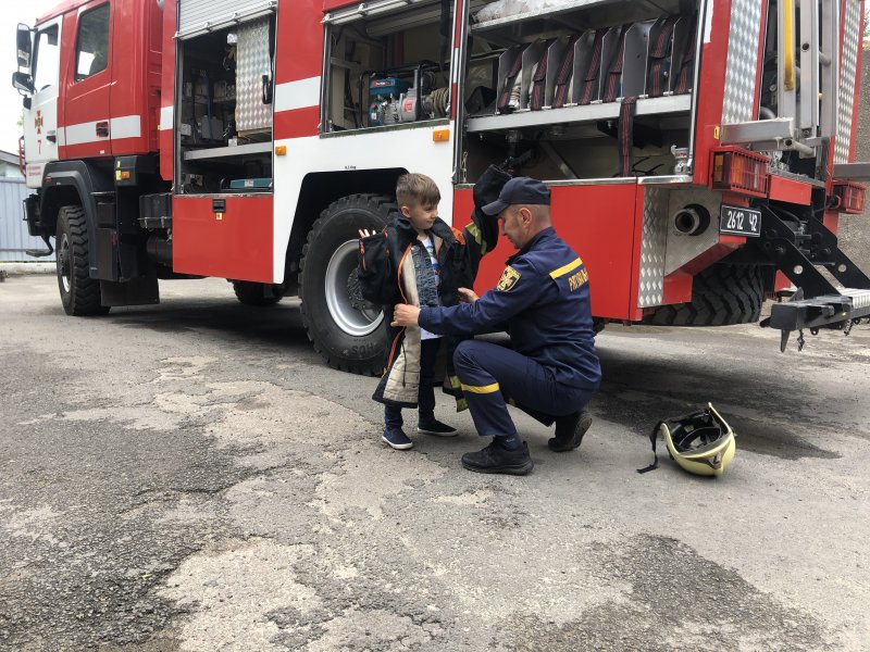 Рятувальники розповіли імениннику про основну техніку й спорядження, допомогли приміряти елементи бойового одягу.