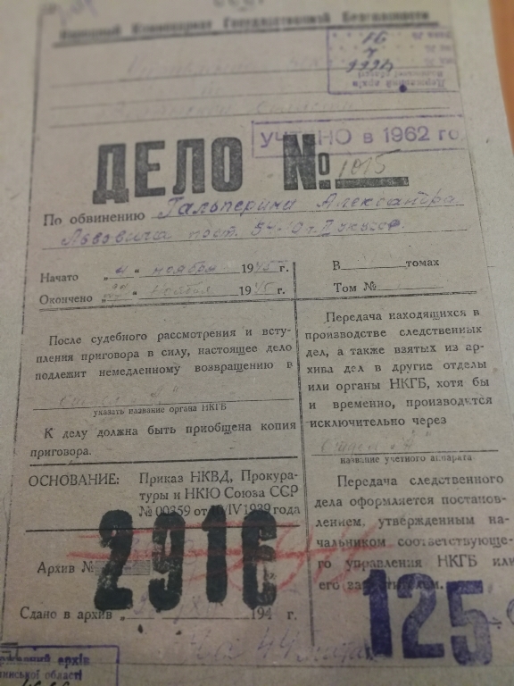 архівно-кримінальної справи на «ворога народу» Олександра Гальпєріна.