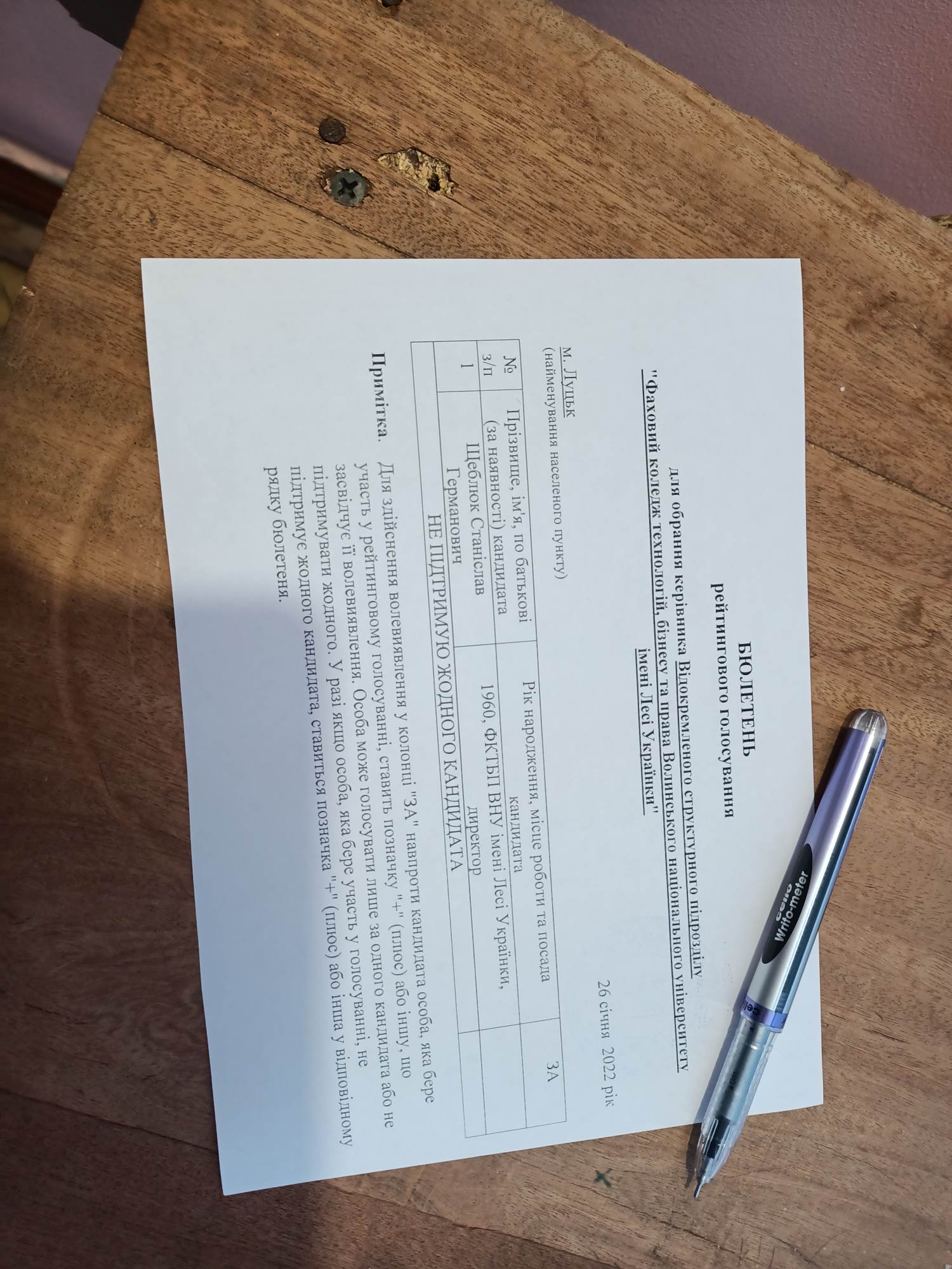 кандидатуру Станіслава Щеблюка, не підтримав жодного кандидата один виборець, а