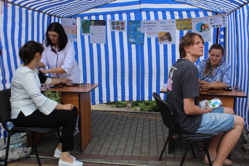 Усі, хто завітав на площу мали змогу проконсультуватися із сімейними лікарями, перевірити тиск та рівень цукру у крові, зробити швидкі тести на COVID-19, ВІЛ/СНІД та гепатит В, С і вакцинуватися від СOVID-19. Також бажаючі перевірили стан родимок.