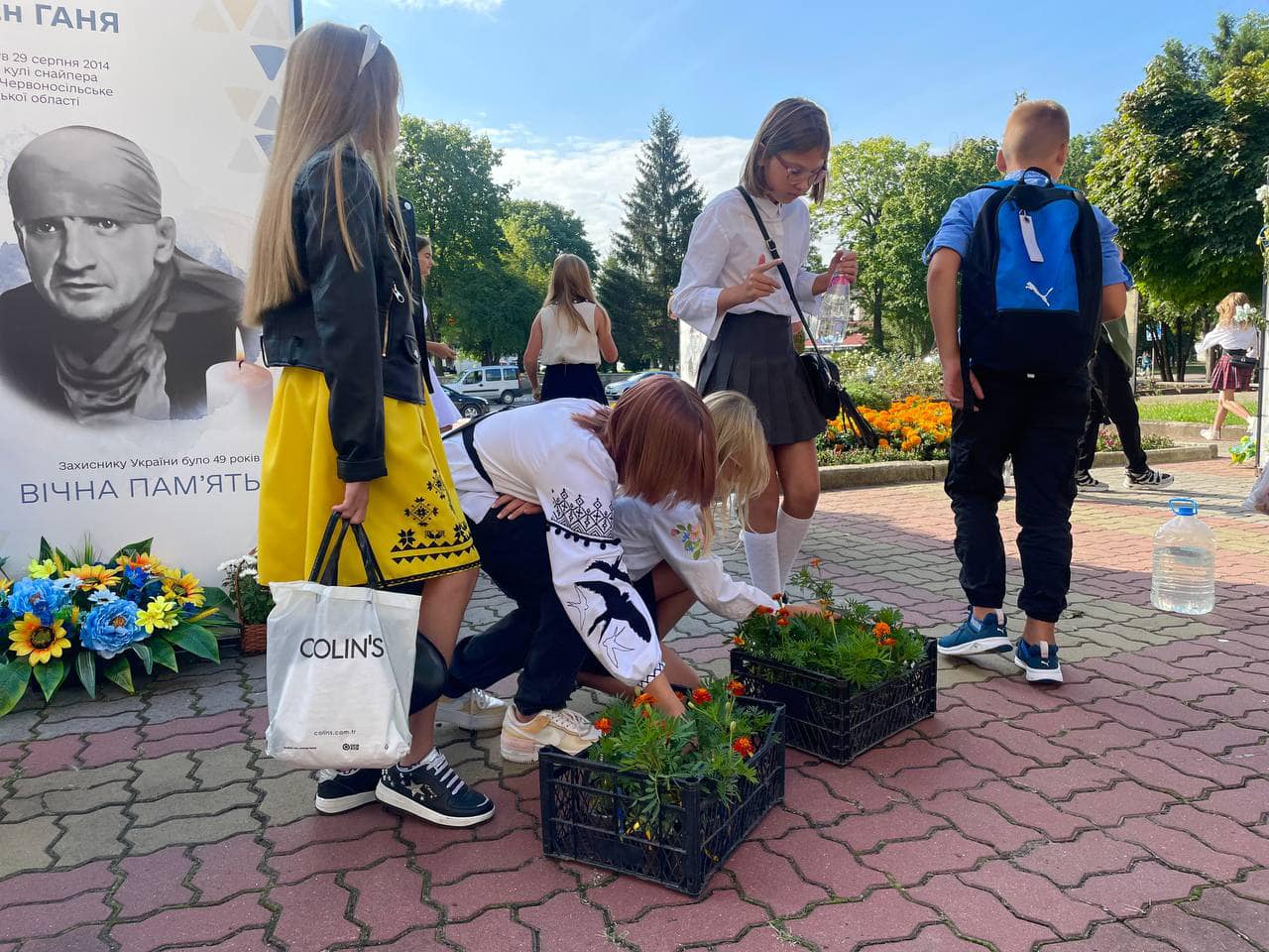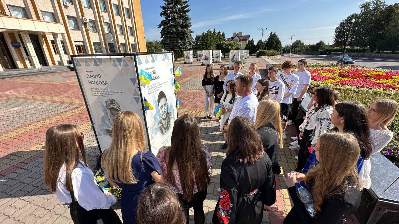 Перший урок багато класів провели на Алеї Героїв, поруч із портретами загиблих воїнів.