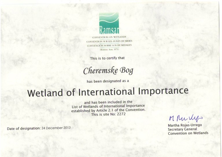 водно-болотним угіддям заповідника статусу міжнародного значення та присвоєння
