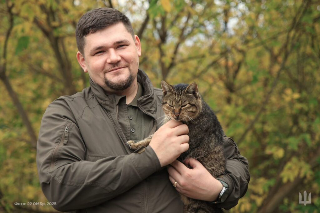 За збігом обставин, фото з Василем Анатолійовичем зробив не з “Антаром”, який на момент зйомок не зміг у них взяти участь. Котика тримає на руках офіцер із позивним “Ахіл”, який у ЗСУ з 2023 року. Виріс від солдата до начальника штабу батальйону матеріального забезпечення. Одружений. У цивільному житті був приватним підприємцем. Родом із полтавського міста Миргорода. На війні дбає про собаку породи тер’єр, якого назвали Мілка.