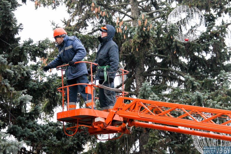з газети «Вечерний Брест», почали з прикрашання живих ялинок, котрі там