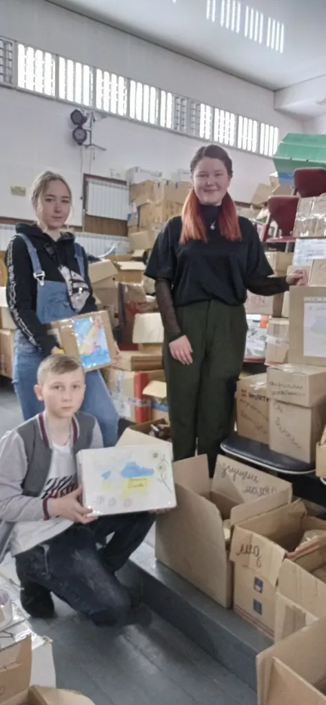 волонтерському центру, що діє на базі Маневицького ЦТДЮ. Діти розфасовують продукти, плетуть маскувальні сітки та надсилають бійцям