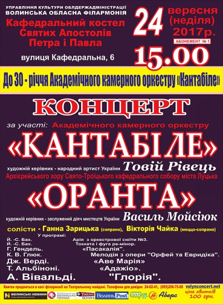 концерт, присвячений 30-річчю Академічного камерного оркестру «Кантабіле»