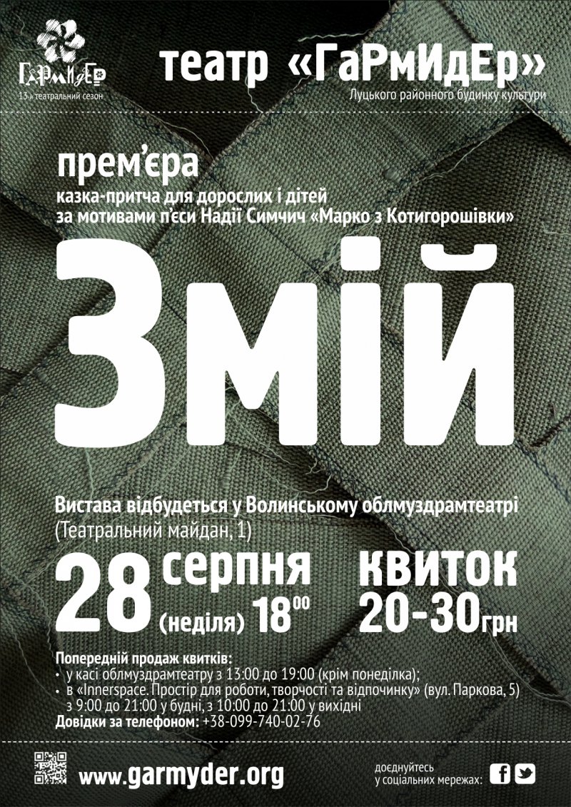 «Ця казка настільки українська за своєю суттю та сьогоденна за своєю проблематикою, що ми вирішили дати їй сценічне життя. Як результат – сучасна казка-притча «Змій», сповнена українського гумору, гострої самоіронії, глибокої символіки та життєвої мудрості. Яскраві персонажі творять динамічне ярмаркове дійство, яке повинне закрутити у своєму вирі й дорослих, і дітей», – повідомили в адміністрації театру.