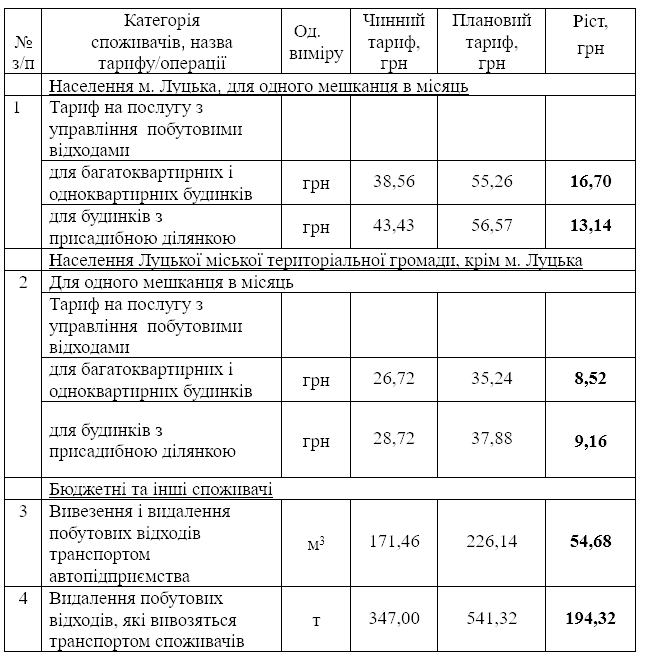 Їх визначено з тарифів на операції зі збирання, перевезення та видалення побутових відходів, які визначені окремо за видами (змішані, великогабаритні, ремонтні).
