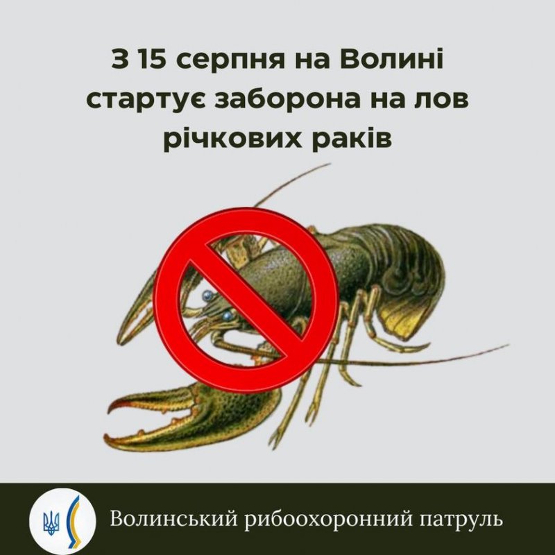 З 15 серпня по 30 вересня на території Волині діятиме заборона на вилов раків