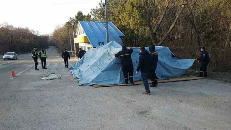 На фото порталу “Обозреватель”: блок-пост біля с. Колінківці на Буковині, де виявили масове зараження коронавірусом заробітчан, які повернулися з-за кордону.
