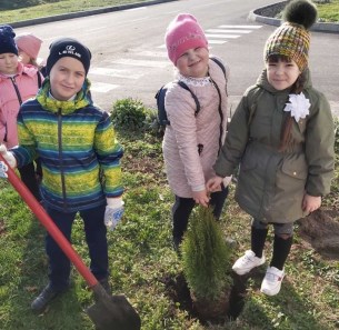 Ірина Оксенюк, інженер лісових культур, розповіла про бідні та багаті ґрунти, продемонструвала, який довгий шлях від насінини до висаджування в лісі проходить деревце, скільки потрібно вкласти часу, терпіння і праці, щоб виростити дерево, а тим більше – ліс. З великим задоволенням та старанністю діти брали участь у висаджуванні туй.