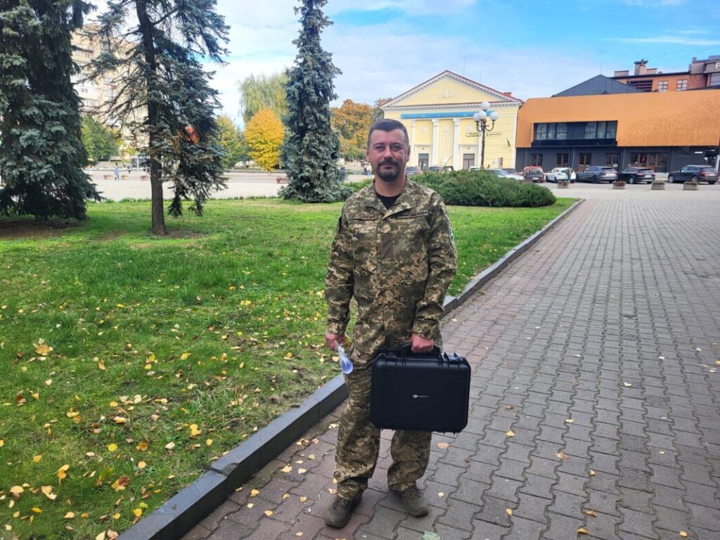 Від ковельчан Михайло Зіньчук повезе на передову квадрокоптер DJI Mavic 3 Fly More Combo з тепловізором – надійного «помічника» для його підрозділу.