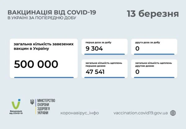 Зокрема, за минулу добу, 12 березня, щеплення проти COVID-19 отримали 9 304