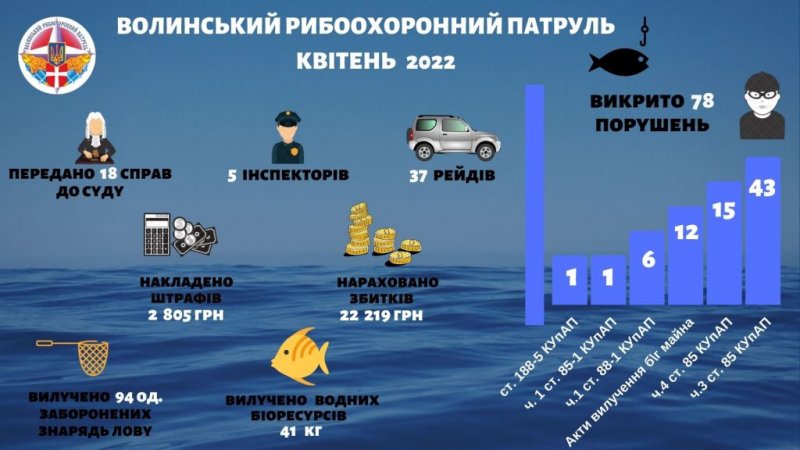 лову та 41 кг водних біоресурсів. 18 справ передали до суду для притягнення