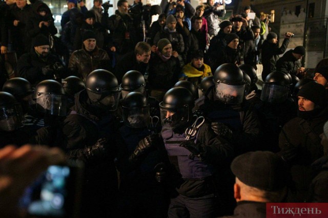 Різніченка, запалити автомобільні шини під стелою правоохоронці в шоломах