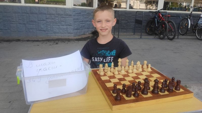 Восьмирічний син Савелій грає з перехожими у шахи на гроші. Зібрані кошти