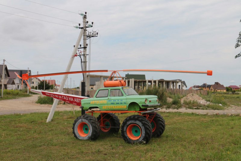 Щоб змайструвати щось схоже на літальний апарат у вигляді гелікоптера, вони використали звичайні підручні матеріали та компоненти різних транспортних засобів. В усякому випадку, кабіна «вертольота» – це кузов старого «Запорожця», шасі – з тракторних коліс, а хвіст гвинтокрила – власної конструкції. І хоча лопасті чудо-монстра постійно обертаються, в небо ця сталева птаха, звичайно, піднятися не може. А от підняти настрій усім автолюбителям, що проїжджають повз унікальний зразок високого польоту фантазії українських «кулібіних» – запросто!