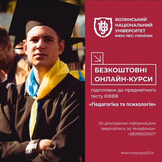 Досвідчені викладачі Волинського національного університету імені Лесі Українки допоможуть підготуватися й успішно скласти тест із педагогіки та психології в магістратуру на спеціальності галузей знань 01 Освіта/Педагогіка.