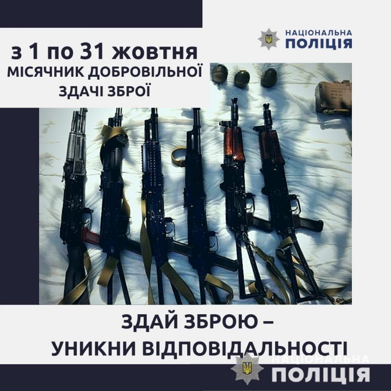 Нагадуємо, з 1 по 31 триває місячник добровільної здачі зброї.