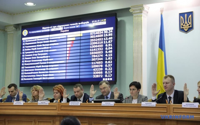 Зеленський отримав 30,24% або 5 млн 714 тис. 034 голосів виборців, Петро Порошенко – 15,95% або 3 млн 014 тис.