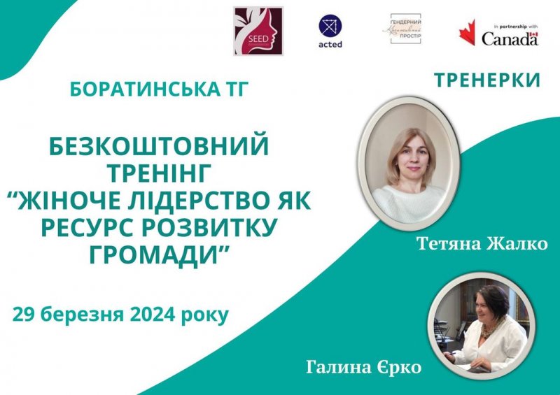 «Жіноче лідерство як ресурс розвитку громади»: у Боратині відбудеться тренінг для жінок