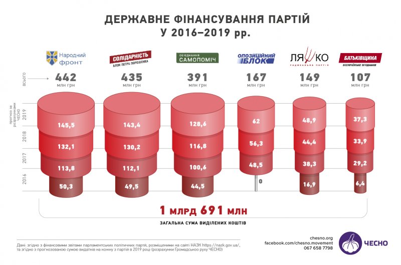 розміру щорічного державного фінансування для політичної партії – 30 млн 979 тис. 450грн. За даними