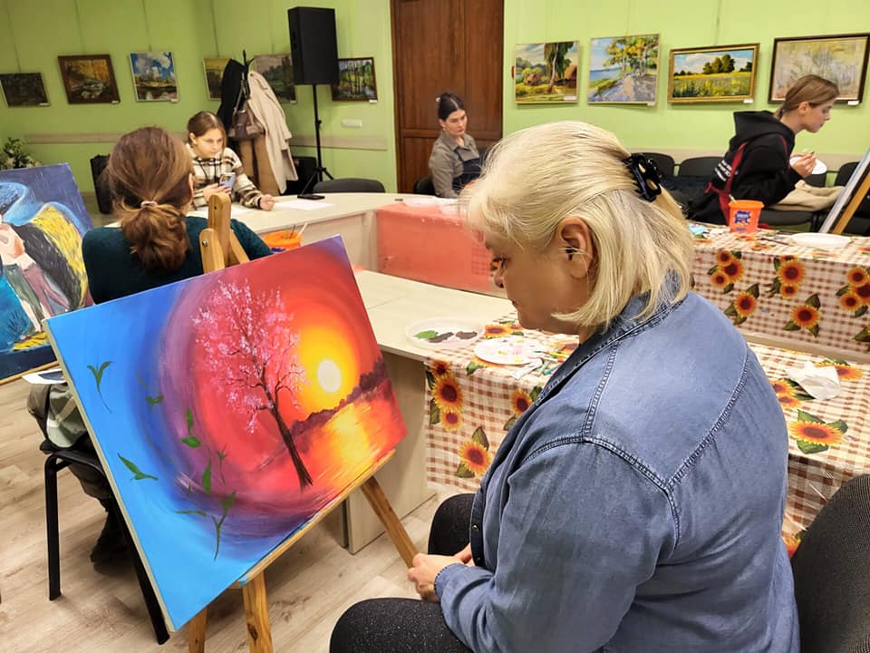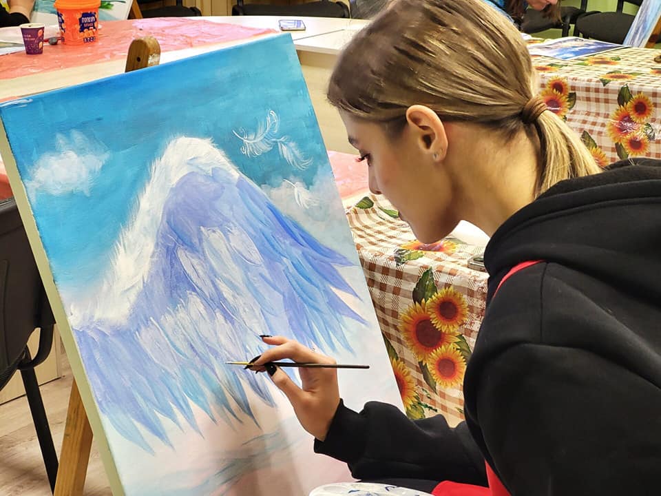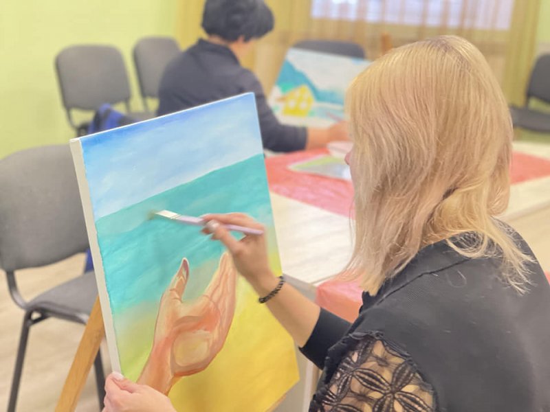 Для Марії створення картини — це перший досвід. Каже, це заспокоює, допомагає зосередитись на хороших емоціях. На її думку, дуже добре, що є така можливість – залишити свої спогади на полотні.