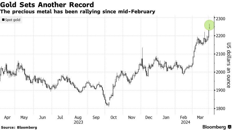 Золото 1 квітня досягло нового рекордного рівня, оскільки сигнали про можливе зниження процентних ставок з боку Федеральної резервної системи стимулювали зростання цін, яке також було підкріплене геополітичною напруженістю та збільшеним попитом у Китаї.